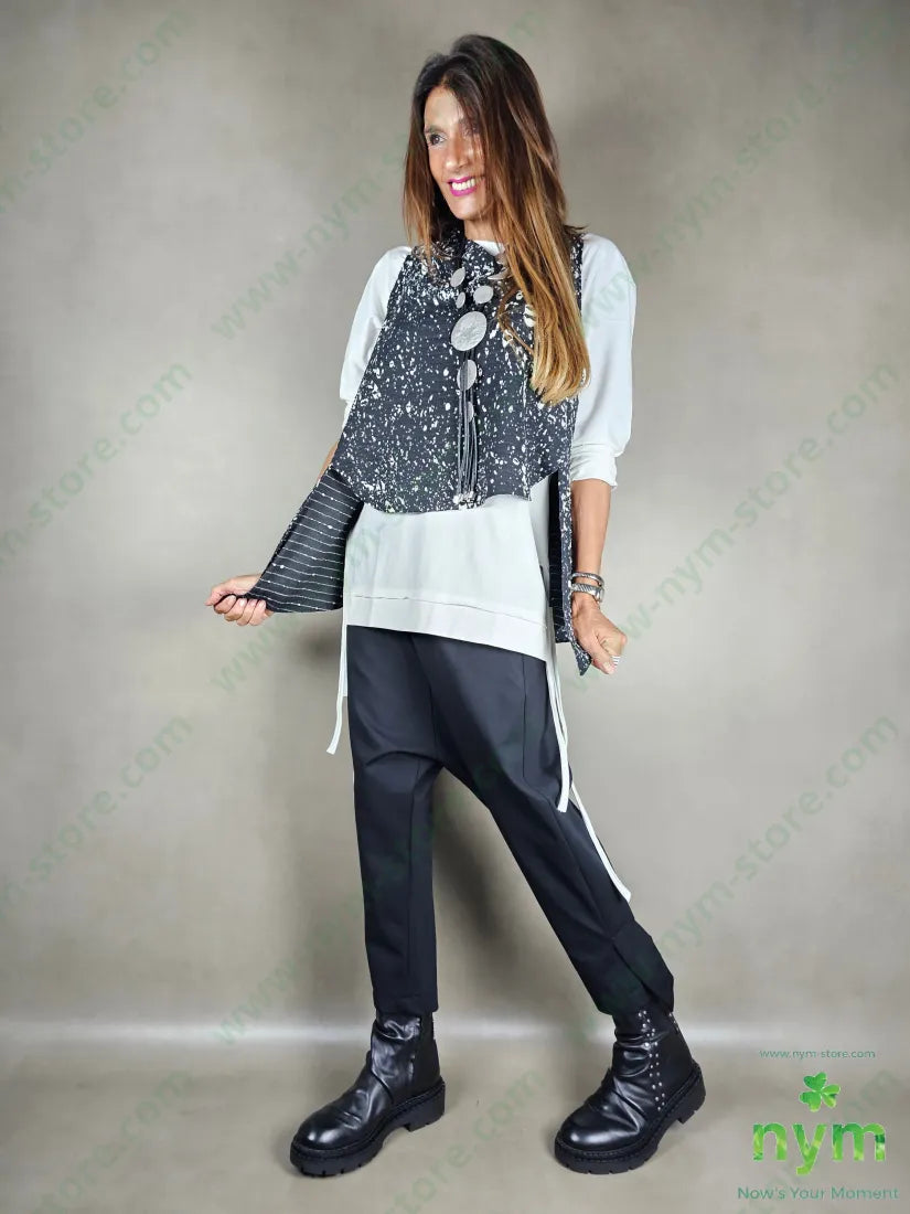 chaleco de tela en forma de trapecio con motivo perforado